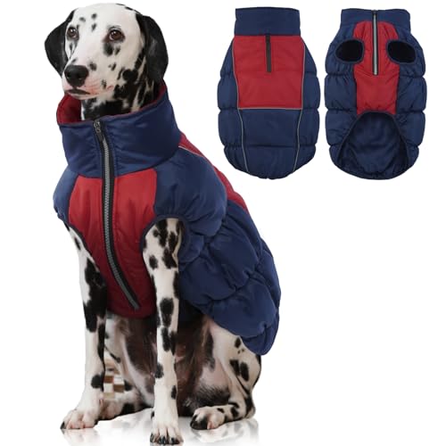 IECOii XL Dog Coat - Winter Waterproof, Extra Warm XLarge Dog Coat with Reflective Fleece Vest, Snowsuit with Zipper Closure, Turtleneck with Harness Hole