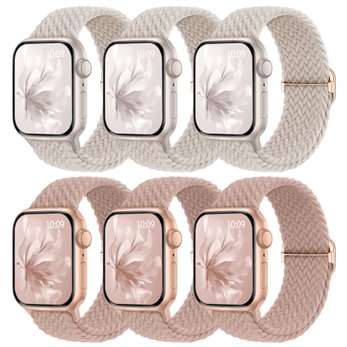 6 Pack Braided Stretchy Bands Compatible with Apple Watch Band 38mm 40mm 41mm 42mm 44mm 45mm 46mm 49mm Women Men, Adjustable Nylon Solo Loop Elastic Straps for iWatch Series 11 10 9 8 7 6 5 4 SE Ultra