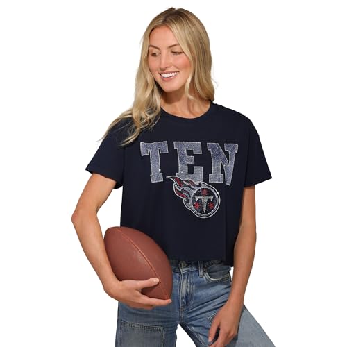 FOCO Tennessee Titans NFL Womens Rhinestone Logo Crop Top - S