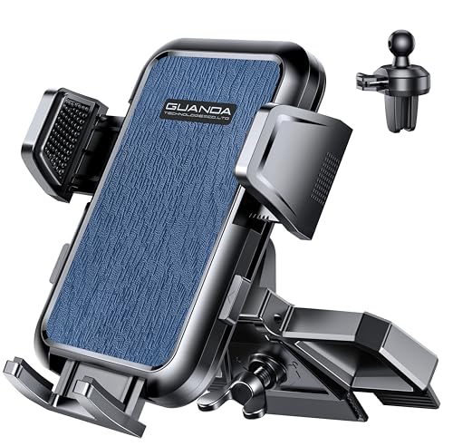 CD Phone Mount, Car Phone Holder & Air Vent Clip [Thick Cases Friendly], 360° Adjustable Universal Phone Mount for Car CD Slot Mount for iPhone & Android Cell Phones (Blue + Vent Clip)