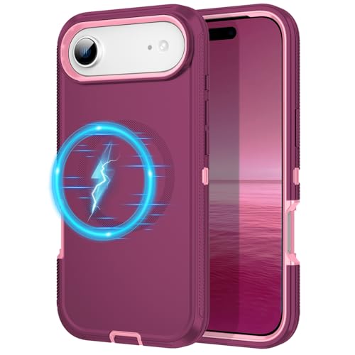 Mieziba for iPhone Air Case,[Compatible with MagSafe][Military Grade Shockproof] 3-Layer Heavy Duty Protection Cover Case for iPhone 17 Air 6.5",Purple/Pink