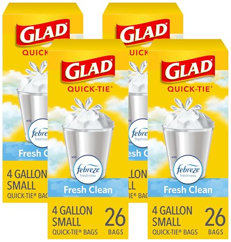 Glad OdorShield Small Trash Bags, Fresh Clean, 4 Gallon, 26 Count (Pack of 4)