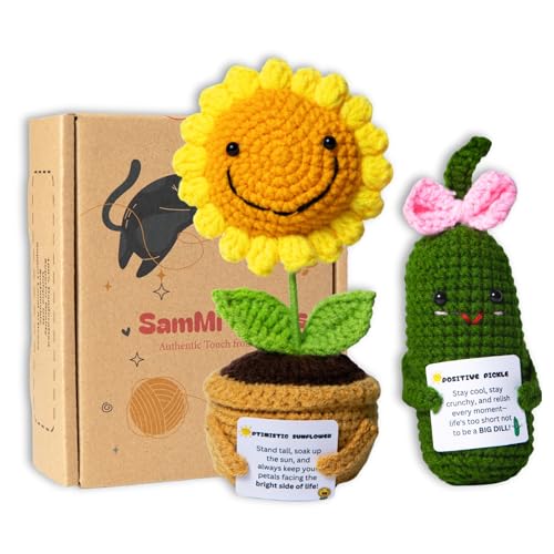 Handmade Crochet Emotional Encouraging Support Pickle & Sunflower – Funny Encouraging Pickle with Card, Cute Knitted Plush Gift for Mom, Friends, and Coworkers