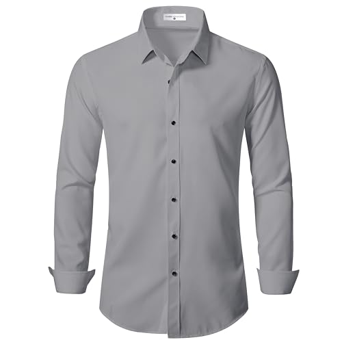 BEILU Men's Slim Fit Dress Shirts Solid Long Sleeve Formal Shirts Business Casual Wedding Button Down Shirts Light Grey X-Large