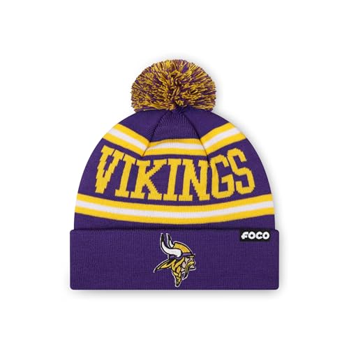FOCO Minnesota Vikings NFL Primary Logo Stripe Pom Beanie - Purple