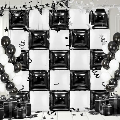 MEMOVAN Black White Square Foil Balloons Wall Double Sided Checkered Balloon Backdrop Balloons Arch Garland Black White Checkered Balloon Backdrop for Racing Themed Birthday Wedding Baby Shower 25pcs