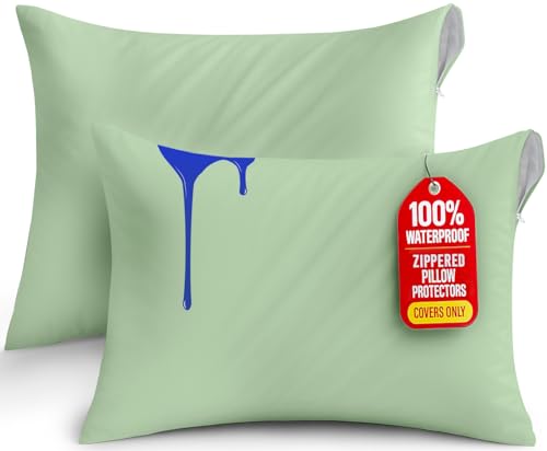 Utopia Bedding Premium 100% Waterproof Pillow Protectors with Zipper Standard Size (Set of 2), Bed Bug and Dust Mite Proof Zippered Pillow Covers, Pillow Encasement Cases, Sage