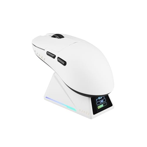 MechLands AJ159 APEX Wireless Mouse, Lightweight Gaming Mice, with Magnetic Charging Design and Display Screen, 30000 DPI, PAW3950 Sensor, BT/2.4G/Wired Connection, 400mAh Battery (White)