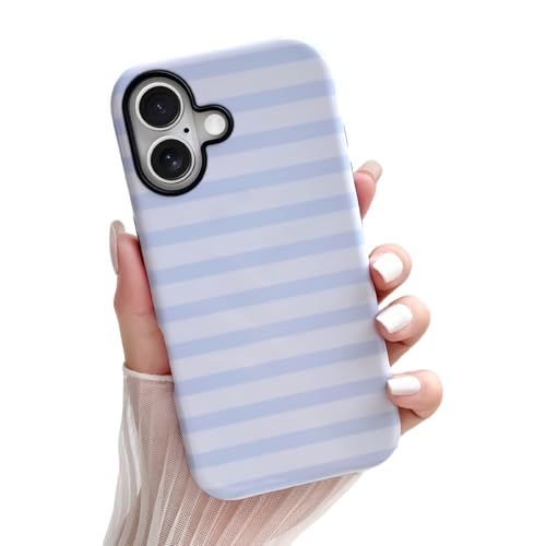 Skyseaco for iPhone 17 Case Cute Aesthetic Horizontal Striped Phone Case for Women Girl Shockof Slim TPU and Hard PC Protective Cover 6.3 inch 2025 - Light Blue
