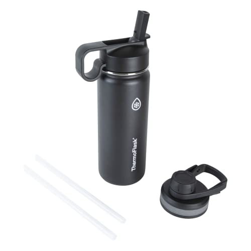 ThermoFlask 18 oz Double Wall Vacuum Insulated Stainless Steel Water Bottle - Reusable with Leakproof Chug & Straw Lids - Keeps Drinks Cold 24 hr/Hot 12 hr - Easy Maintenance - Gym/On-the-Go, Black