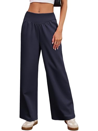 Anbech Women's Wide Leg Baggy Casual Sweatpants with Pockets Tummy Control Casual Lounge Joggers Soft Winter 2025 Pants Blue