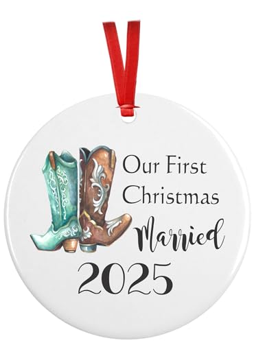 First Christmas as Mr and Mrs 2025, Just Married Ornament Personalized, Western Wedding Gift, Cowboy Boot Design