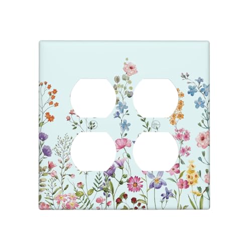 Decorative Light Switch Cover Plate Rustic Wild Floral Vintage Blue Watercolor Flower 2 Gang Socket Covers Double Duplex Wallplates Switch Plates and Outlet Covers for Bathroom Home Decor