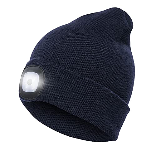 CENSGO Unisex Hat with Light, USB Rechargeable Headlamp Beanie, Gifts for Dad Father Men Husband Warm Knitted Cap Navy Blue
