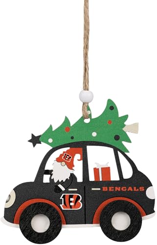 FOCO NFL Cincinnati Bengals Wooden Car Ornament with Tree – Officially Licensed Holiday Decoration