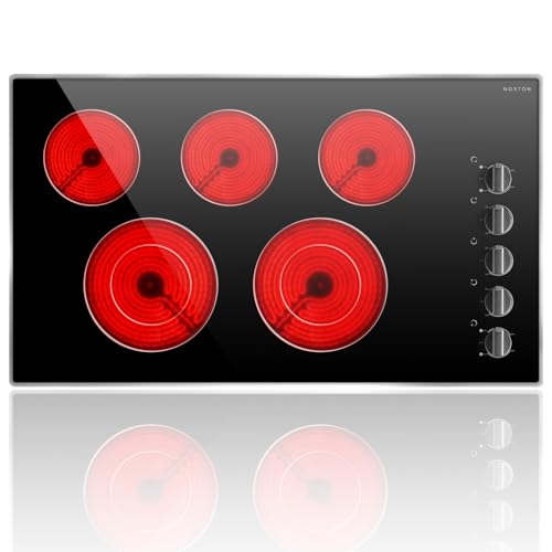 Noxton 36 Inch 5 Burners Electric Cooktop, Built-in 36" Radiant Electric Ceramic Stove Top with Glass Protection Metal Frame,Knob Control, Hot Surface Indicator, 220-240v, No Plug, Hard Wire