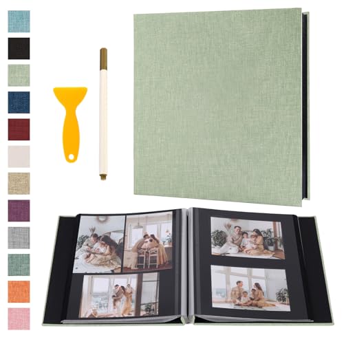 Photo Album Self Adhesive Pages Black Sticky Pages Large Scrapbook Linen Cover for 4x6 5x7 8x10 Pictures Album de Fotos Wedding Couples Baby Family Memory Book, 13.2x12.8 Grass Green 40 Pages
