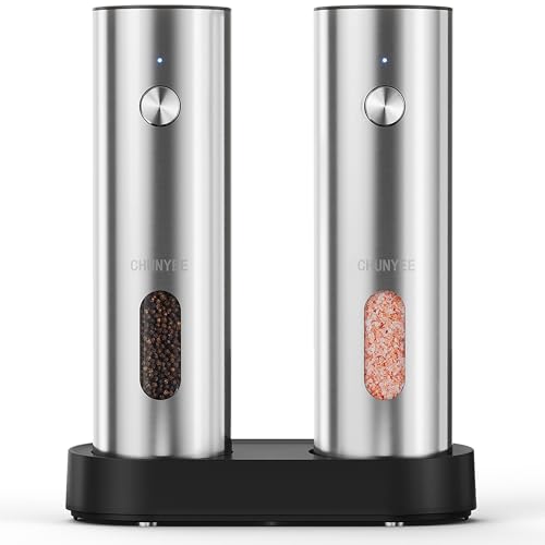 Electric Salt and Pepper Grinder Set with Rechargeable Base - Upgraded Large Capacity, Refillable Pepper Mill Set with LED Light & Adjustable Coarseness, Ideal for Kitchen, Outdoor, BBQ & Gift Giving