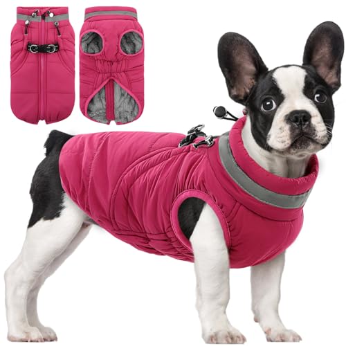 SAWMONG Dog Coat, Warm Dog Winter Coat, Waterproof Fleece Jacket, Cold Weather Dogs Jacket (S,Rosered)