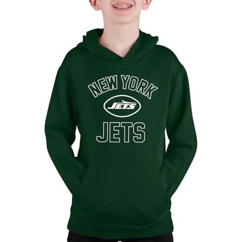 Team Fan Apparel NFL Youth Gameday Hooded Sweatshirt, Pro Football Hoodie Pullover Sweatshirt, Sports Apparel Boys and Girls (New York Jets - Forest Green, Small)