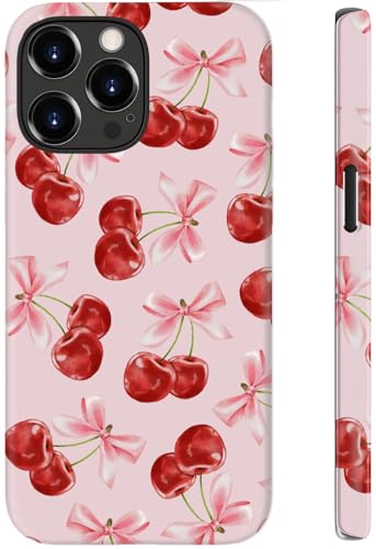 STARVIP for iPhone 13 Pro Max Case, Wireless Charging Compatible,Dual-Layer Protection with Cute Wildflower, Soft Silicone + Hard Shell, Chic Phone Cover for Women - Sweet Cherry Bows