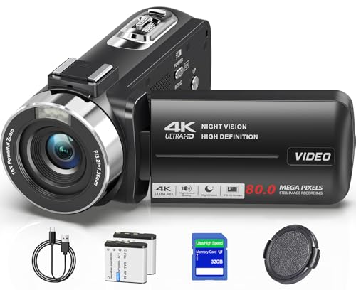 LUKPOW Video Camera Camcorder 4K Ultra HD 80MP Vlogging Camera for YouTube 18X Digital Zoom Camcorder Recorder 3.0" IPS 270° Screen IR Night Vision with 32GB SD Card, Lens Cover and 2 Batteries
