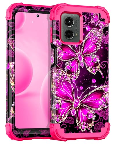 Miqala for Moto G Play 5G 2024 Case,Glow in The Dark Three Layer Heavy Duty Shockproof Full Body Protection Hard Plastic Bumper+Soft Silicone Case for Motorala G Play 2024 5G,Rose Red