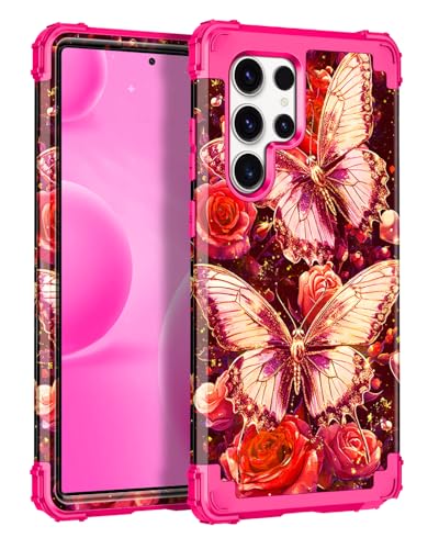 Miqala for Galaxy S23 Ultra 5G Case,Glow in The Dark Three Layer Heavy Duty Shockproof Full Protection Hard Plastic Bumper+Soft Silicone Protective Case for Samsung S23 Ultra,Red/Pink