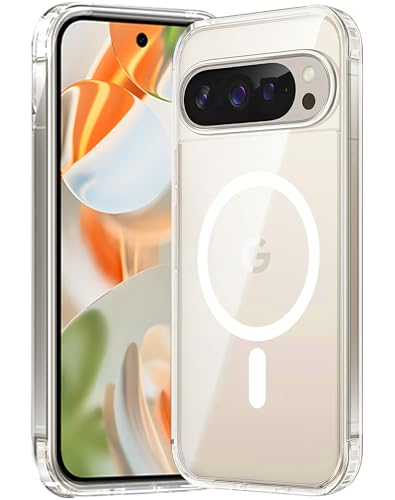 CENMASO for Google Pixel 9/10 Pro XL Case [Compatible with MagSafe][Anti-Yellowing][Military Grade Protection] Slim Shockproof Transparent Magnetic Phone Case-Crystal Clear
