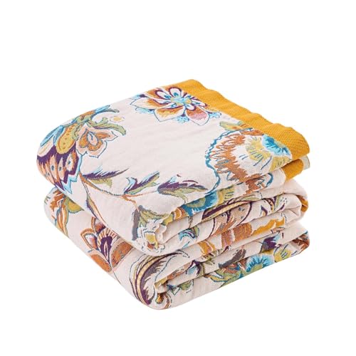 XIBLC Boho Throw Blanket for Bed, 100% Cotton Soft Rustic Quilt Fall Blanket, 50"x60" Floral Printed Farmhouse Decor Bed Blankets, All Season Rustic Reversible Bohemian Throw Quilt