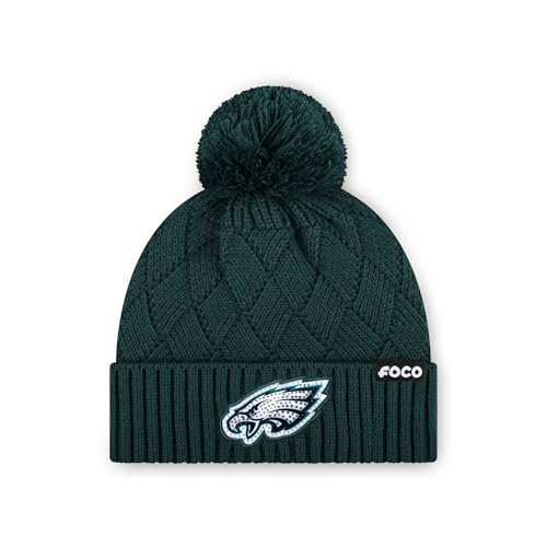 FOCO Philadelphia Eagles NFL Rhinestone Primary Logo Criss Cross Beanie - Midnight Green