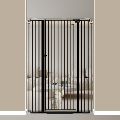 57" Extra Tall Cat Gate 38.58'' - 43.31'' Wide Dog Gate Inoor, Baby Gate with Cat Door Walk Through Swing Auto Close Safety Dog Pet Gate for Indoor Stairs, Doorways (Black)