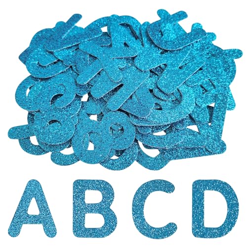 SYLVASS 72Pcs Glitter Iron-on Letters and Numbers Patches for Clothing Backpack Hats Shirts Jeans Bags, DIY Accessories-Blue