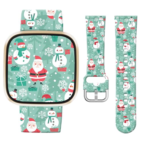 Jngnpn Christmas Sport Band Compatible with Fitbit Versa 3 / Sense/Fitbit Versa 4 / Sense 2 Bands for Women Men,Holiday Cute Soft Silicone Stylish Waterproof Replacement Strap