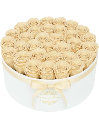 40 Forever Flowers in a Luxury Suede Box, Preserved Roses Birthday Gifts for Women, Romantic Anniversary Wedding Gifts for Women Her Girlfriend Wife, Champagne Red