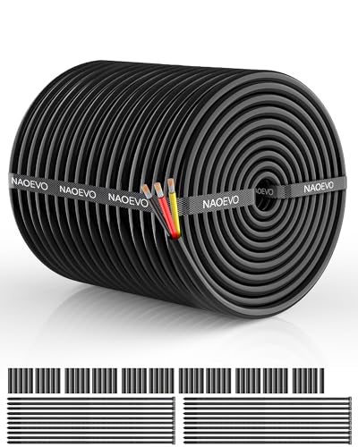 NAOEVO 12 Gauge Wire 3 Conductor Electrical Wire, 12 AWG Stranded PVC Cord, 12V Low Voltage/Tinned Copper/Flexible Cable for Automotive Wiring, Lamp Cord, Marine Cable (200FT)