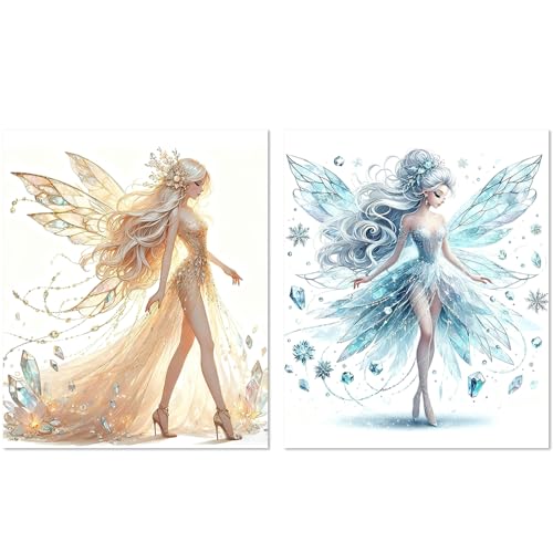 XUNLURY Fairy Diamond Art Kits 2 Pcs, Golden and Blue Fantasy Fairy Diamond Painting Kits for Kids Girls Adults Beginners, Full Drill Diamonds Dots for Home Decor, 9.8x11.8 Inch