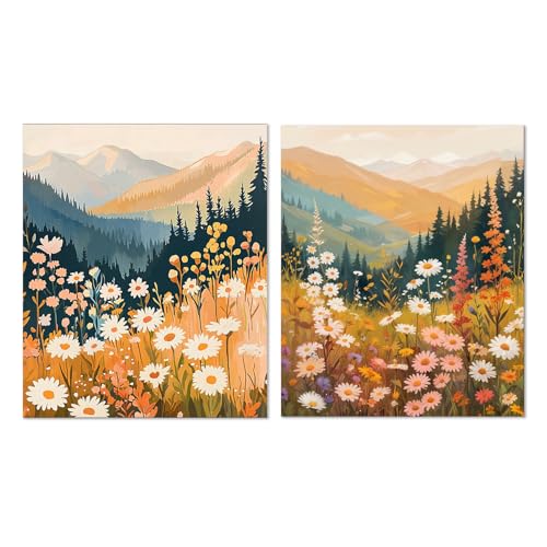JWVK Nature Mountain Floral Landscape Diamond Art Kits 2 Pack, Cottagecore Wildflower Aesthetic DIY Diamond Gem Painting Art Kits for Girls Kids Adults Beginners, Floral Room Decor 10x11.8 Inch