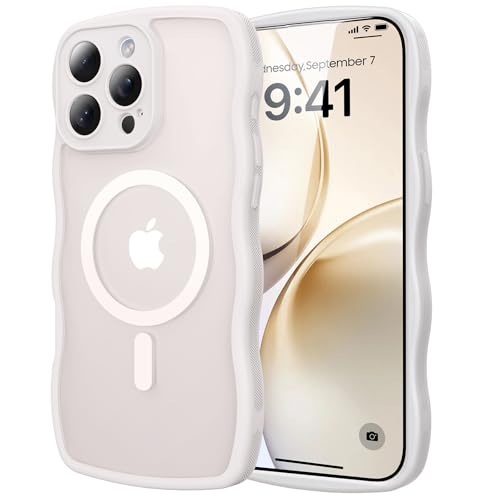 Peerock for iPhone 15 Pro Case with MagSafe, Upgraded [Full Camera Protection] [Fit for MagSafe] [Mil-Grade Drop] Cute Wave Translucent Non-Slip Phone Case for iPhone 15 Pro 6.1",White