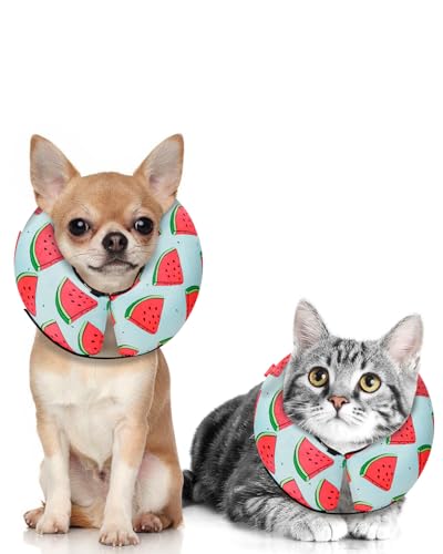 MIDOG Inflatable Dog Cone Alternative for After Surgery - Soft Protective Donut Collar Prevents Licking, Comfortable Recovery E-Collar Alternative for Small Medium Large Dogs (Watermelon,XS)