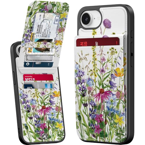 Bemal for iPhone 16e Wallet Case, Built-in 6 Card Holder, Fashion Printed, RFID Blocking, PU Leather Kickstand, Magnetic Closure, Shockproof Phone Cover for Women and Men, Blooming Floral