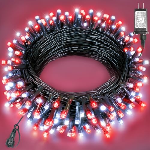 40FT 120 LED Christmas Lights Outdoor, Red and White Christmas String Lights Waterproof, 8 Modes & Timer, Connectable Christmas Tree Lights for Indoor House Patio Xmas Holiday Decorations