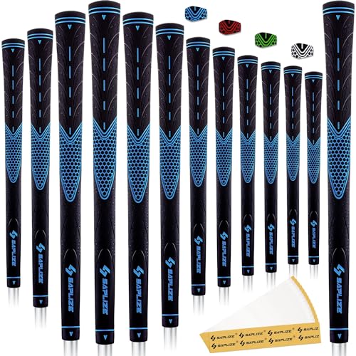 SAPLIZE Golf Grips Set of 13,Bundle with Tape or Full Regripping Kit,Standard,Women/Men Anti-slip Rubber Golf Club Grips,CC01 Series,Blue