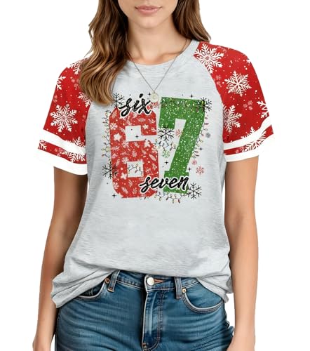 Christmas Shirts for Women Meme Christmas Shirt Six Seven Meme Shirts Xmas Snow Tops Casual Raglan Sleeve Tee