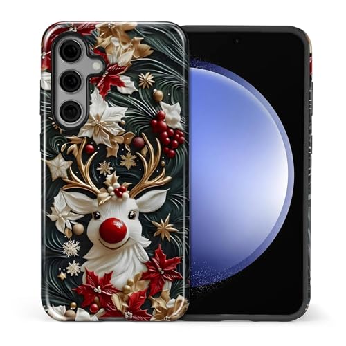 SKAMIX Case for Samsung Galaxy S25,Camera Full Shell Protection Soft Phone Case -Reindeer Floral Christmas