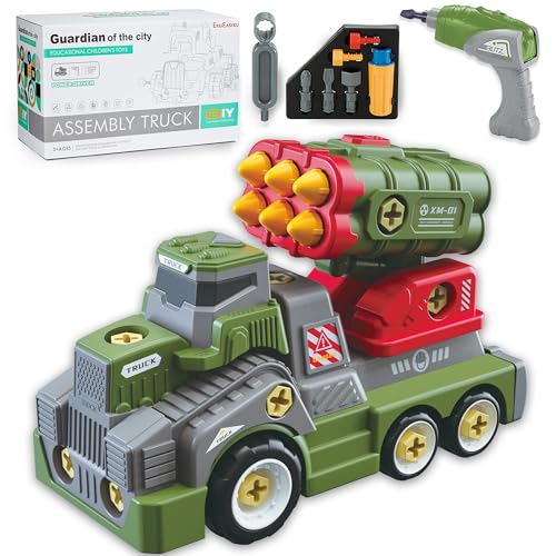 EKU EASYKU 11inches Large Take Apart Army Toys for Boys Girls Kids 3-5 6-8 Year Old Missile Katyusha Rocket Trucks with Electric Drill Assembly Toy Set Gifts