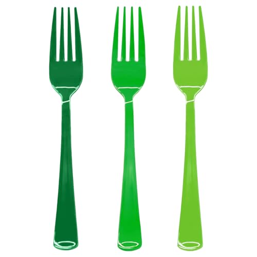 60 PCS Gradient Green Plastic Forks Heavy Duty Green Plastic Cutlery Set Disposable for Birthday, Saint Patrick's Day, Christmas, Graduation Party, Picnic