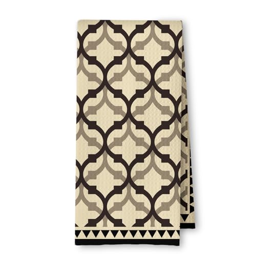 ArtisaEura Beige and Brown Moroccan Kitchen Towels, Boho Abstract Dish Tea Towels for Kitchen Decor, Retro Mid Century Modern Hand Towel for Bathroom Decor, 16x24 Inches