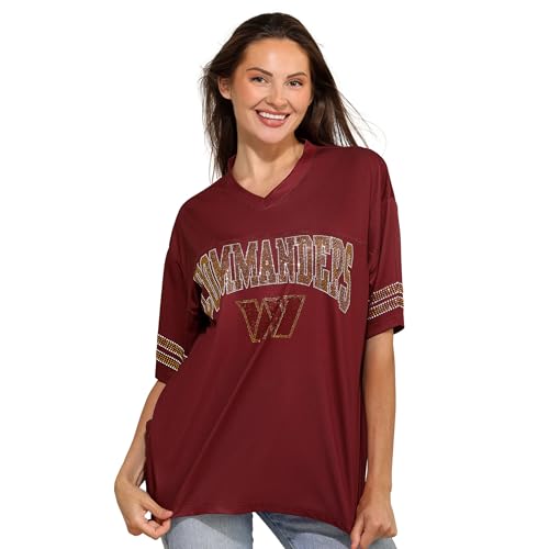 FOCO Washington Commanders NFL Womens Rhinestone Logo Oversized V-Neck Mesh T-Shirt - L