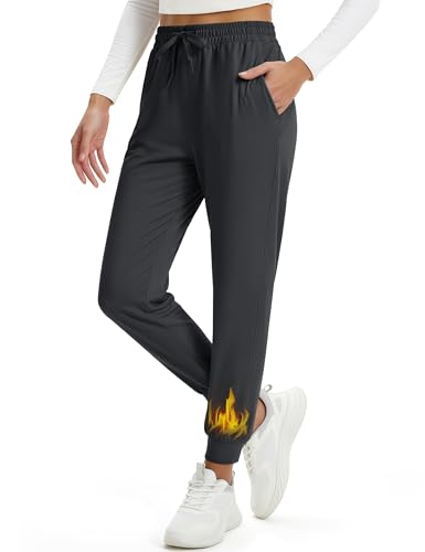 MAGCOMSEN Waterproof Pants Women Winter Fleece Lined Thermal Joggers Winter Snow Workout Drawstring Elastic Dark Grey, L